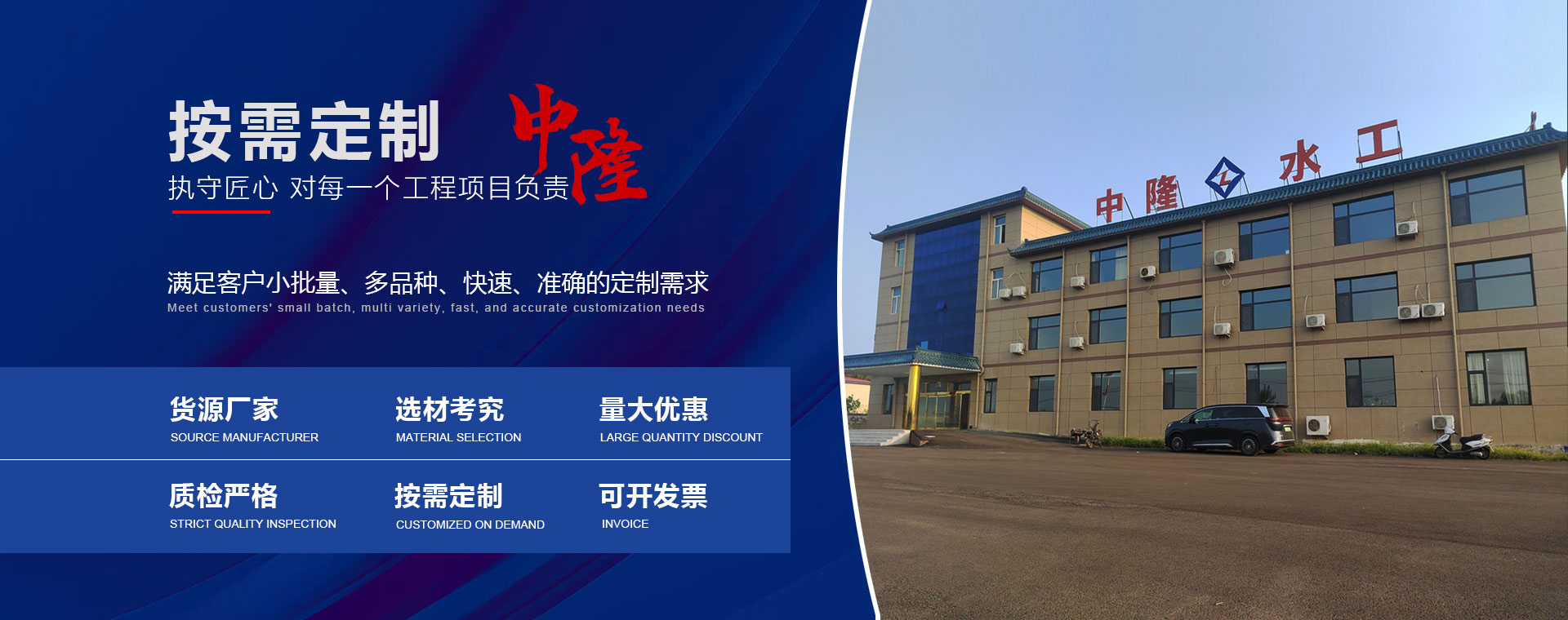 邢臺市中隆水工設備有限公司位于新河縣九龍工業(yè)園區(qū)占地面積20000平方米。北鄰北環(huán)路、西鄰西環(huán)路,交通便利。 公司堅持,依法經(jīng)營,誠信服務的宗旨,尋求合作共創(chuàng)輝煌。融科研制造銷售安裝,服務為一體的水工設備專業(yè)制造公司。優(yōu)質制造設備,規(guī)格齊全,產品檢測體系完整,各項技術指標均達到行業(yè)標準,給客戶提供無憂合作! 主要產品有: &n···